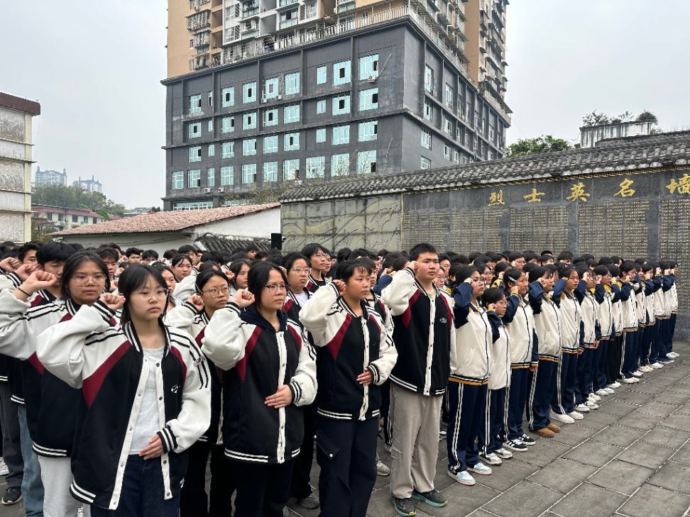活动现场,全体师生身着整洁校服,庄严肃穆地参与各项活动:奏唱国歌并默哀1分钟,缅怀革命先烈;梁平讲述本地英烈事迹,寄语青年学子;学校代表敬献花圈,师生依次敬献白菊花、鞠躬致哀;全体师生在领誓人带领下庄严宣誓,随后在签名横幅上郑重签名;随后,全体师生瞻仰烈士纪念碑与烈士墓;最后,主持人作总结讲话,号召师生将英烈精神转化为学习和工作的动力,全体师生有序返程。