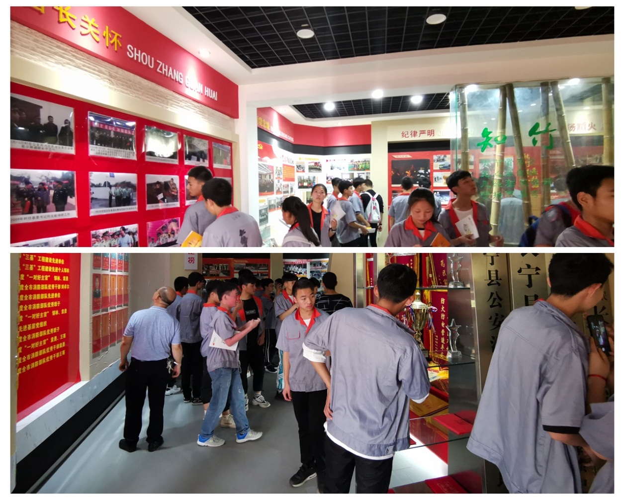 接着同学们参观了消防展览室,看到宜宾消防发展历程和那些一幅幅记载着消防中队荣誉的照片,听着消防员一个个惊心动魄的消防事迹,同学们都忍不住惊叹起来,由衷地表达了他们对消防员们的敬佩之情。