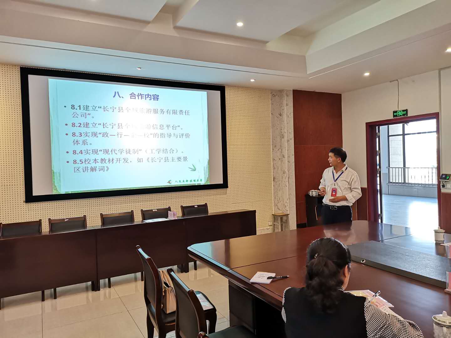 会上,县文化广播电视和旅游局领导表示我县旅游资源丰富,景区、酒店、农家乐等发展基础十分好,特别高铁开通后,旅游业的发展会越来越好。长宁旅游的发展离不开旅游人才,非常感谢长宁职校十几年来,为本县培养了大量的旅游人才,服务地方经济。同时对学校旅游人才的培养提出了建议。