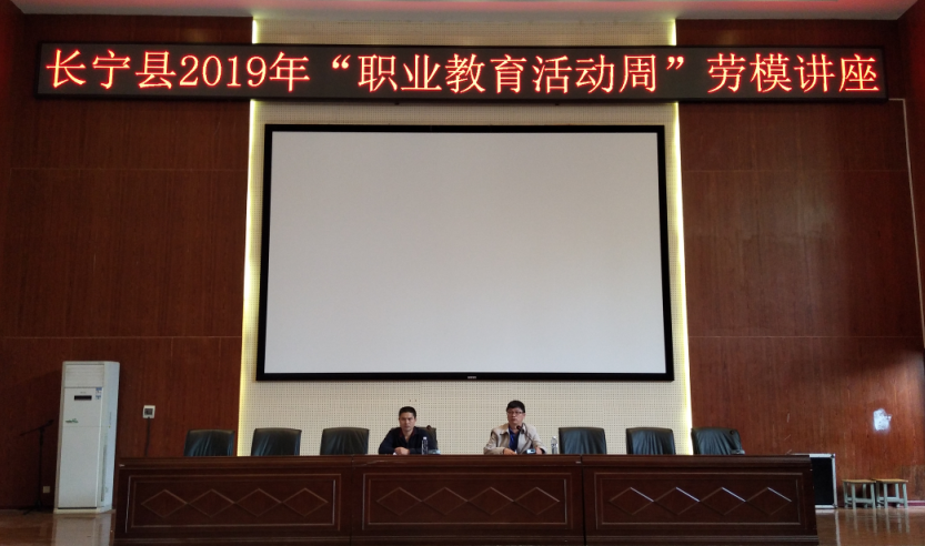 为了贯彻落实国务院开展“职业教育活动周”精神,弘扬劳动光荣、技能宝贵、创造伟大的时代风尚,形成“崇尚一技之长、不唯学历凭能力”的良好氛围,全面提升学生职业教育素养和职业技术应用水平。根据上级和学校的有关部署,我校于5月13日在学校举行“劳模工匠”进校园讲座,邀请了富源公司重装分厂车间管理员兼任铣镗组组长、宜宾市劳动模范赵世强在集贤厅,为学校机械专业教师和学生代表上了一堂生动的“劳模工匠进校园”讲座。长宁职校副校长邹年华担任主持人。