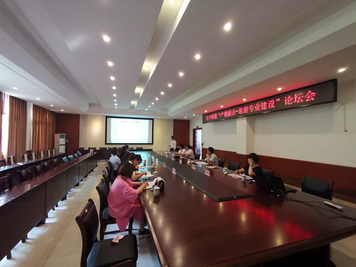 4.改善专业教学条件。深化校企合作,吸引企业资源,合作共建生产型实训基地“长宁县全域旅游服务有限责任公司”,实现校企共同育人。制定新建实训室的建设规划,新建环幕虚拟导游讲解实训室1间、新建竹文化长廊与已合作的6个校外顶岗实习基地加强联系。