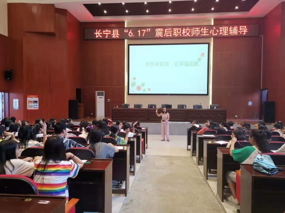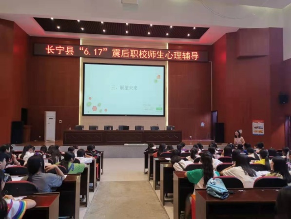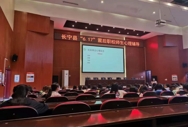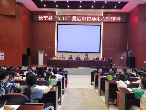 6月25日,宜宾市教育和体育局灾后学校心理援助专家组到长宁职校对全校师生进行心理辅导。