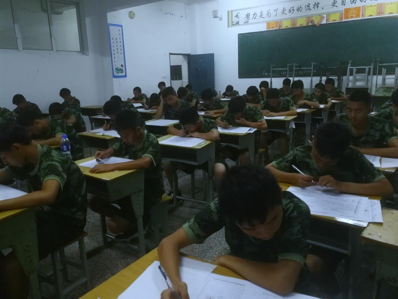 本次测试是我校在军训期间第一次组织学生考试,一方面为了让学生有种紧迫感,意识到我们来学校就是为了学知识;另一方面是为了对新生学习情况做摸底,以便以后对学生的发展评估做参考。
