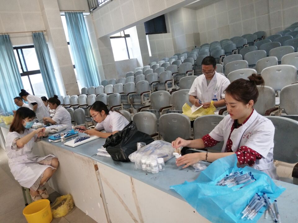 镇卫生院李永中医生率领十几名医务人员在我校阶梯教室对2019年秋期高一新生进行结核病筛查。本次筛查采用学校结核病防控工作规范推荐的结核病菌素试验(PPD试验),我校师生给予了大力的支持和配合,具体工作由政教处周涛副主任和安全办陈龙副主任负责。
