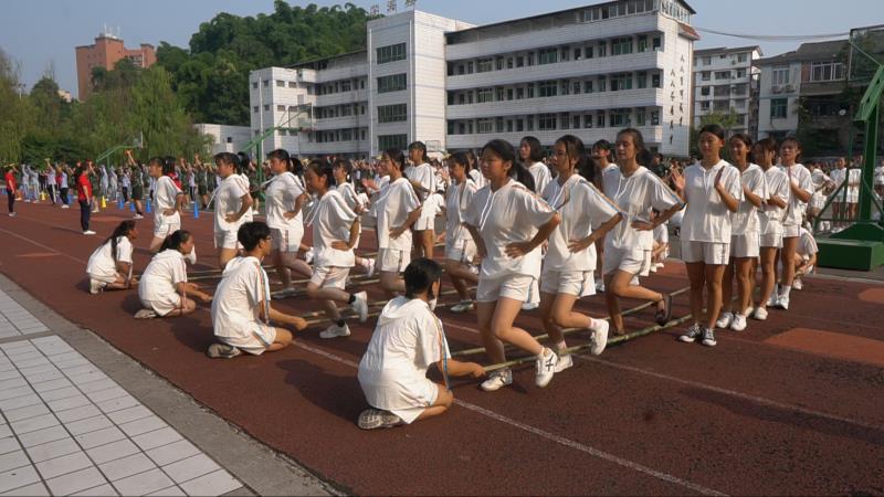 整场展演由长宁职校自编自演,主题突出,精神抖擞,整齐划一,精彩纷呈。整个展演分为三个部分,首先是韵律操表演,其次是集体跑步,最后是竹竿舞表演。欢快的节奏、优美的乐章、和谐的音符烘托了国庆佳节即将来临之际的喜悦气氛。