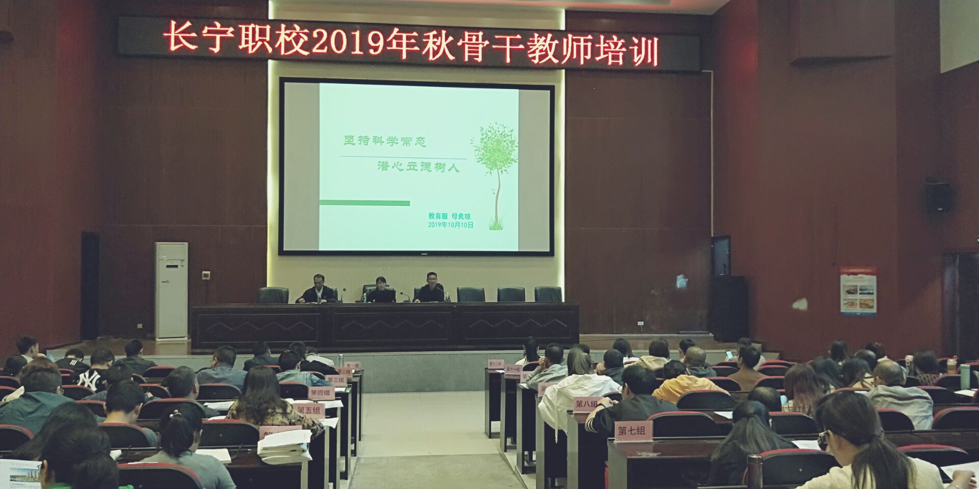 10月10日长宁县职校举行了青年教师培训班第四期培训,教育股母良琼校长以《坚持科学常态,潜心立德树人》为主题,为全校青年教师上了精彩的一课。
