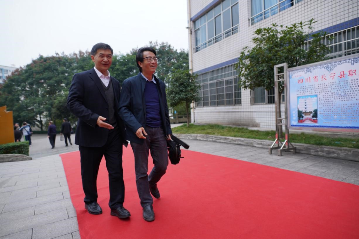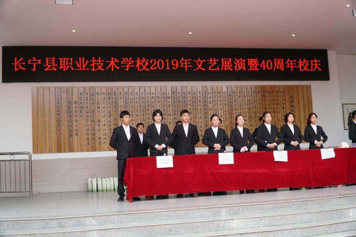 各级领导、校友、嘉宾以及全校师生欢聚一堂,共襄盛典,共叙发展。出席庆典活动领导的有四川省陶行知研究会职业教育专委会会长李代慧、宜宾市人大副主任张家园,宜宾市教科所副所长李佑春,宜宾临港经济开发区企业服务中心主任李子雄,长宁县政协主席周小平,中共长宁县委宣传部部长陈强,长宁县人大常委会副主任张兴平、余益有,长宁县教育和体育局副局长姚思奇、李金华等领导;有宜宾学院、宜宾职业技术学院、宜宾广播电视大学、天府新区航空旅游职业学院、宜宾市内各中等职业技术学校以及县内中小学、幼儿园代表。