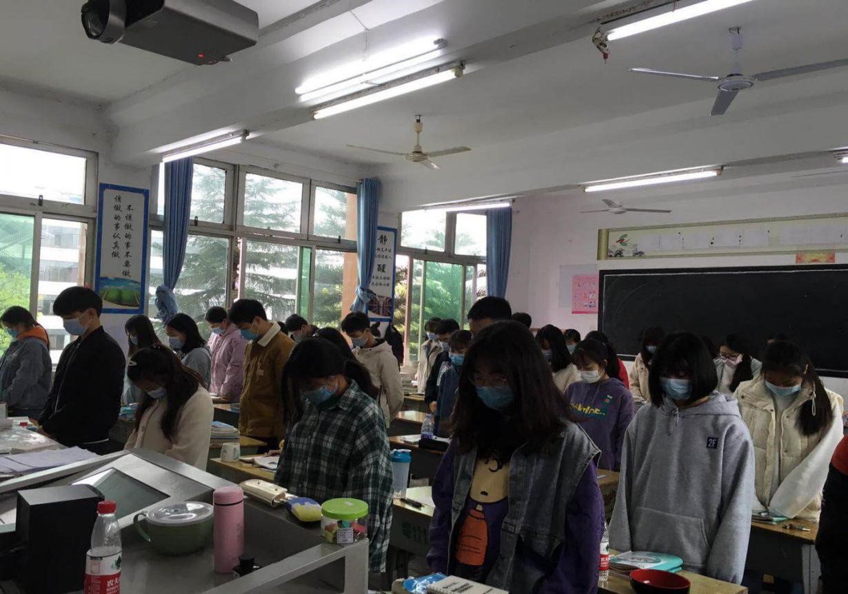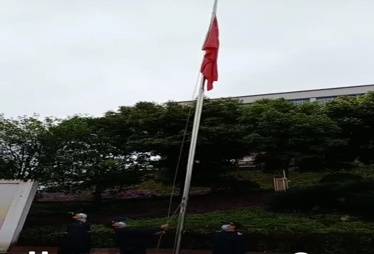 4月4日上午10点,学校举行了降半旗哀悼活动。全体在校高三学生,随着鸣笛声起,默哀3分钟。未返校的同学在家中静立默哀。