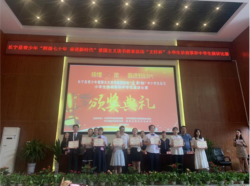 为庆祝新中国成立七十周年,5月22日,由中共长宁县委宣传部、长宁县精神文明建设办公室、长宁县教育和体育局、新华文轩长宁分公司联合举办的长宁县青少年“辉煌七十年 奋进新时代爱国主义读书教育活动“文轩杯”中学生演讲比赛在长宁县职业技术学校集贤厅举行。经过选拔,我校陈虹旭、杨智健、吴杰三位同学参加了比赛。