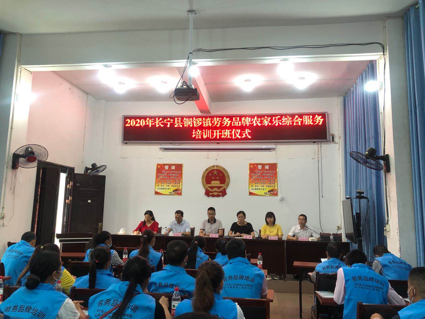 为助力长宁县全域旅游发展,发展乡村旅游,为地方培养农家乐行业服务人才,帮助广大农民工提升职业技能水平,根据《宜宾市人民政府办公室关于印发宜宾市职业技能提升行动实施方案(2019-2021年)的通知》(宜府办发〔2019〕19号)和我县职业技能提升行动工作要求,发挥我校劳务培训基地的优势,由长宁县农民工服务中心主办、长宁县职业技术学校承办的铜锣镇劳务品牌农家乐综合服务培训班于2020年6月12日在铜锣乡政府会议室正式开班。