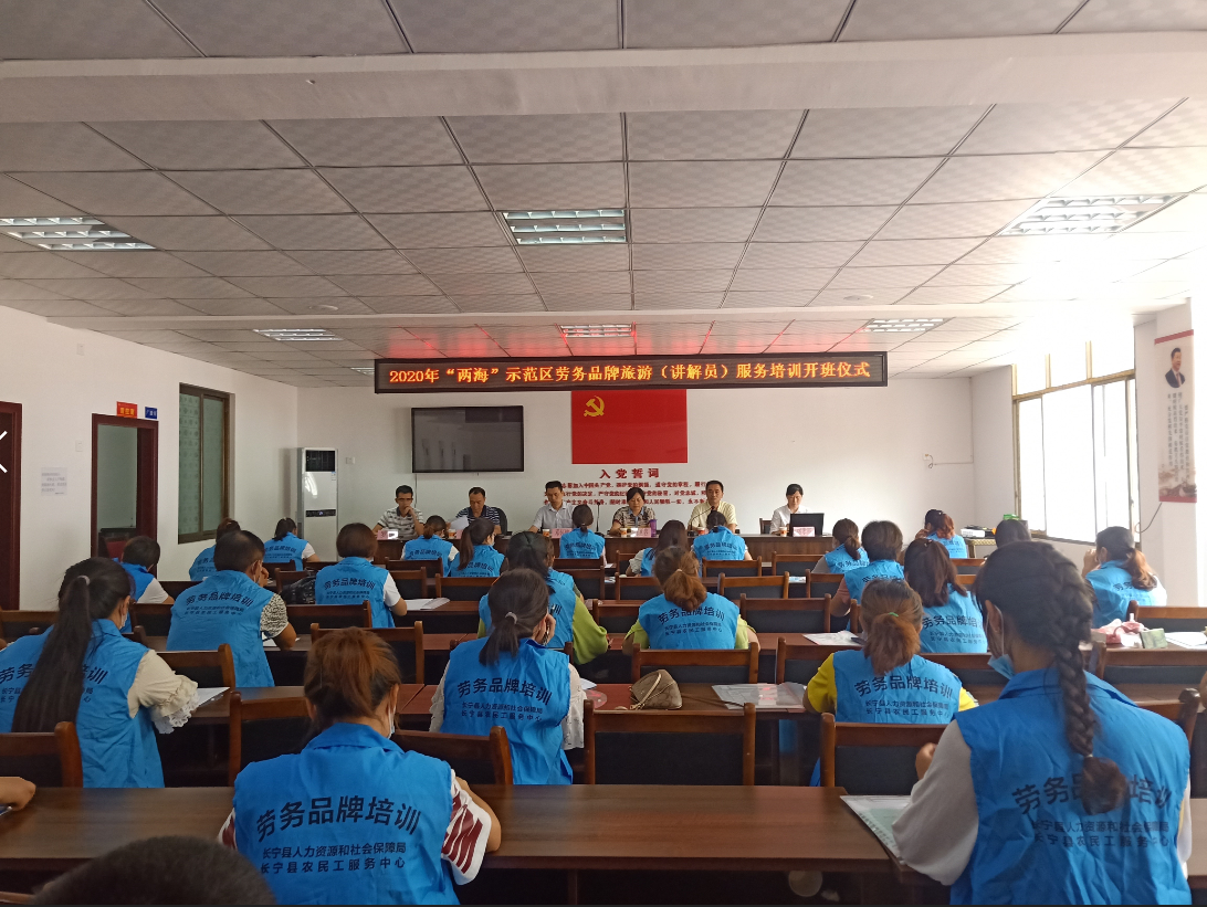 为了进一步提升长宁县全域旅游公共服务能力,促进全县旅游持续稳步发展。为竹海景区培养导游讲解服务人才,帮助广大民工提升职业技能水平,根据《宜宾市人民政府办公室关于印发宜宾市职业技能提升行动实施方案(2019-2021年)的通知》(宜府办发〔2019〕19号)和我县职业技能提升行动工作要求,发挥我校劳务培训基地的优势,由长宁县农民工服务中心主办、竹海镇政府农工办协助,长宁县职业技术学校承办的竹海镇劳务品牌导游讲解综合服务培训班于2020年7月9日在竹海镇万岭箐社区党群活动服务中心二楼会议室正式开班。