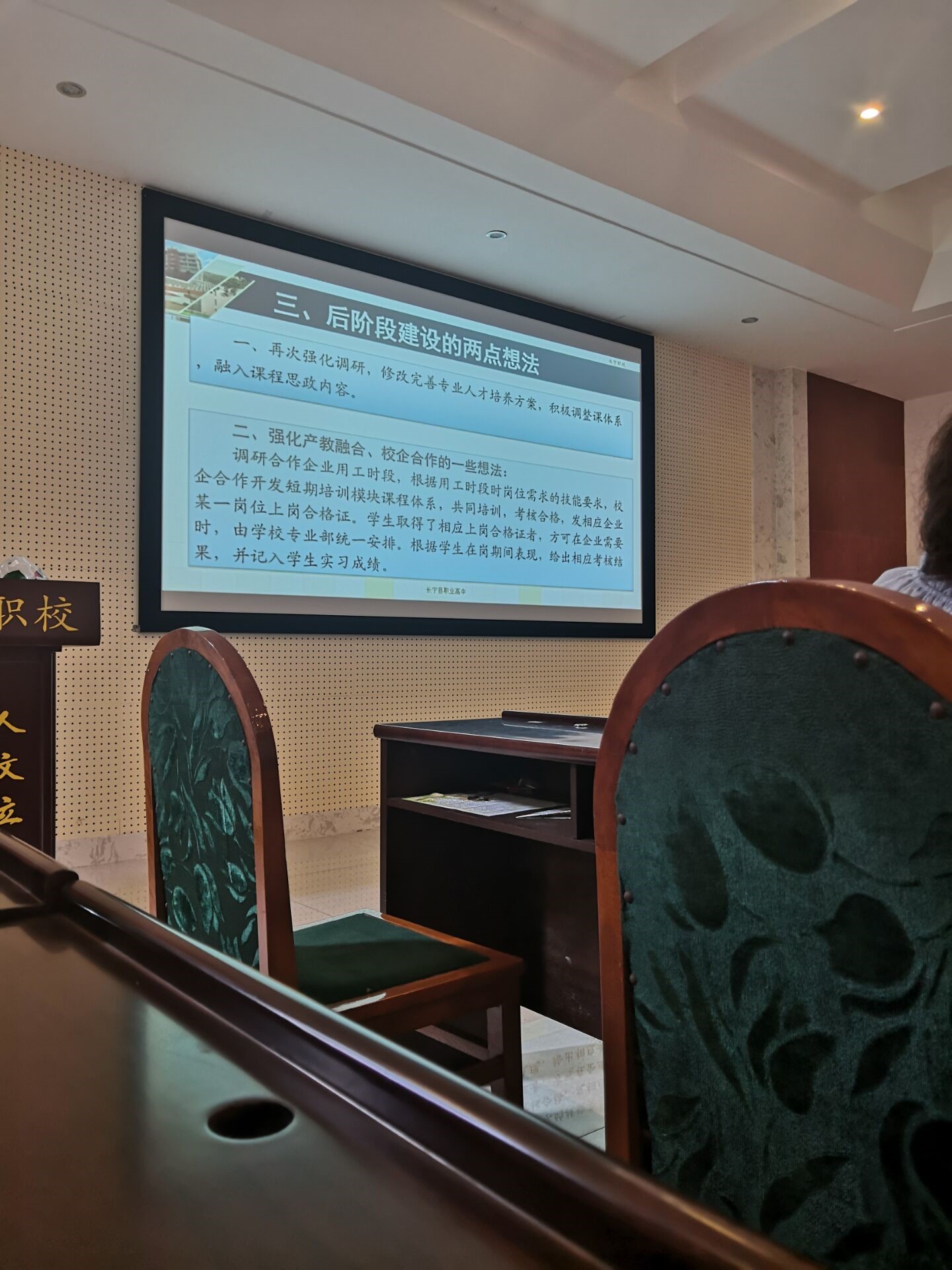 会上,邹校长指出目前我校示范专业建设情况并不乐观,需要再次对接方案和任务书,逐条分解,逐条解决,定人定时完成,并定期召开会议进行反馈。邹校长还提出了关于下一阶段建设工作的两点想法:一是再次强化调研,根据调研结果修改完善人才培养方案,积极调整课程体系,并融入课程思政内容;二是强化产教融合、校企合作,由专业部分工合作积极对接企业,了解企业合作需求,作出具体校企合作安排。