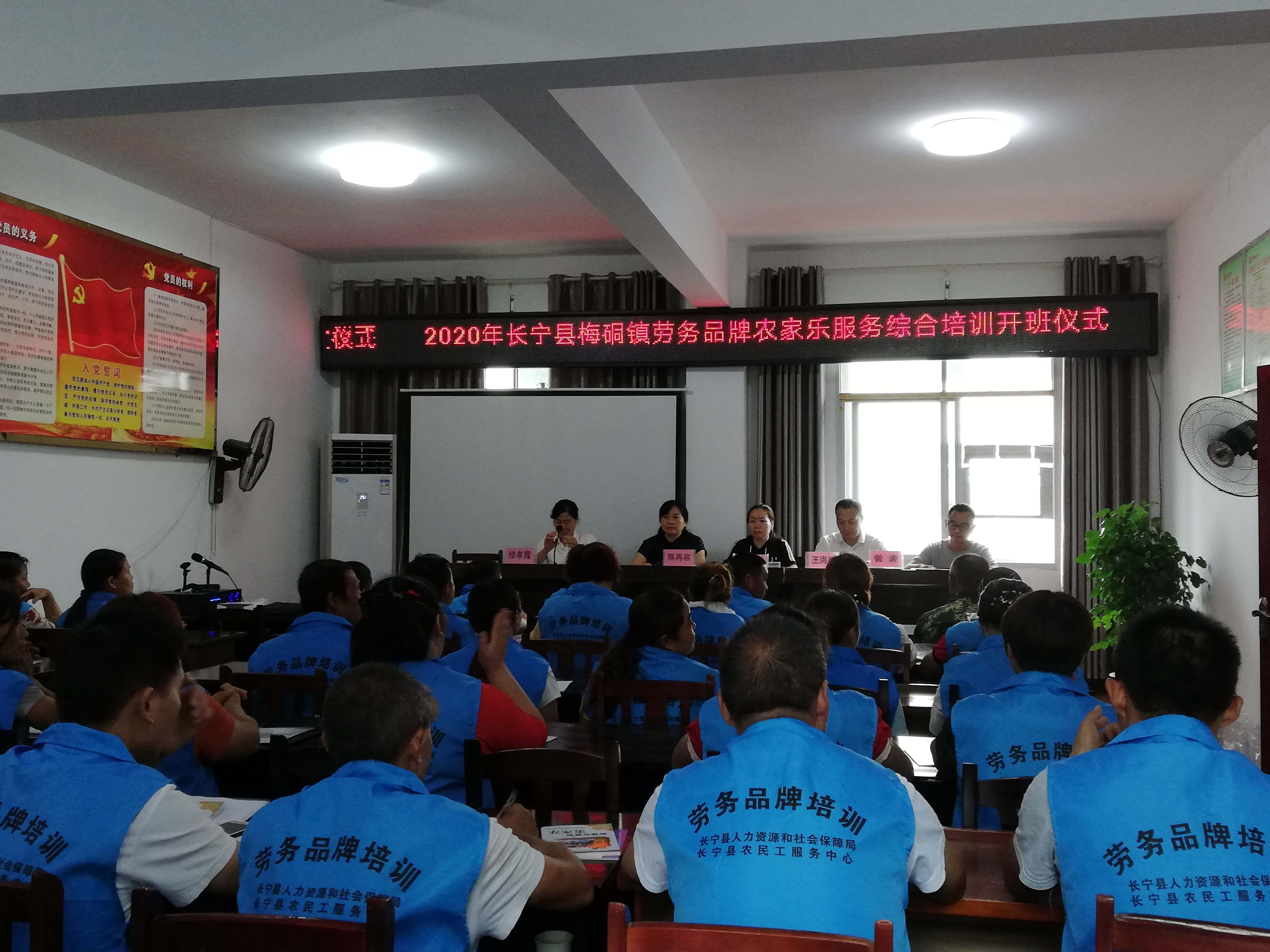 为助力长宁县全域旅游发展,发展乡村旅游,为地方培养农家乐行业服务人才,帮助广大农民工提升职业技能水平,根据《宜宾市人民政府办公室关于印发宜宾市职业技能提升行动实施方案(2019-2021年)的通知》(宜府办发〔2019〕19号)和我县职业技能提升行动工作要求,由长宁县农民工服务中心主办、长宁县职业技术学校承办的梅硐镇农家乐综合服务初级劳务品牌培训班于2020年7月17日在梅硐镇石陇村会议室正式开班。