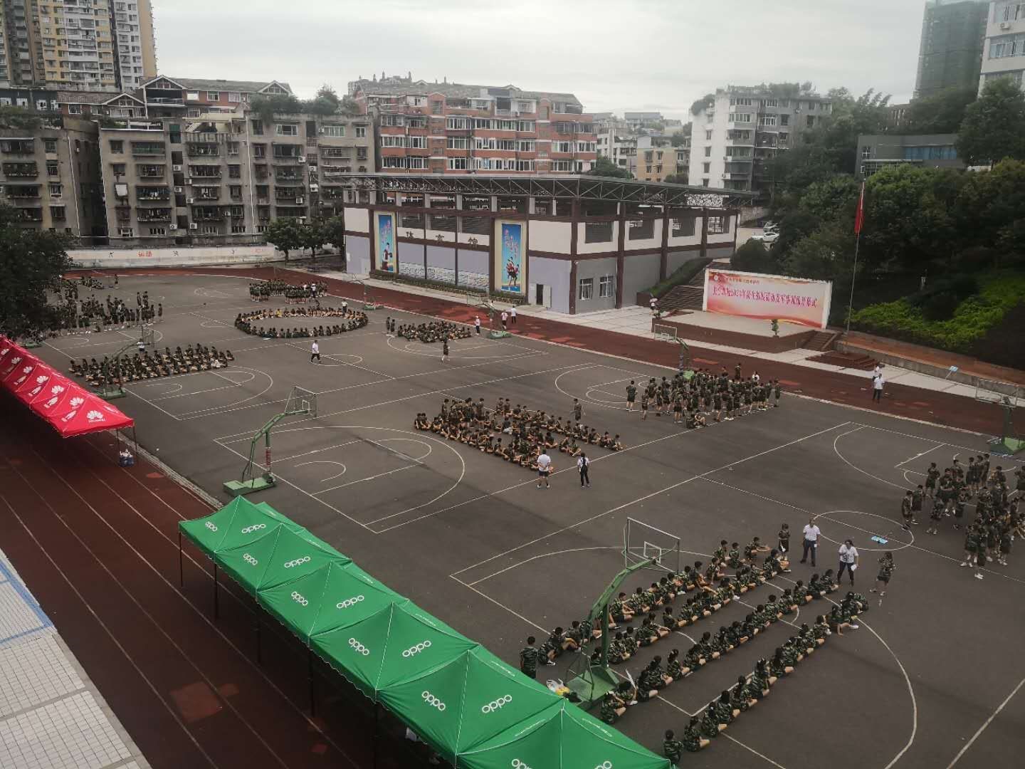 为了培养学生团队合作精神和团队凝聚力,军训第一天安排的是拓展训练,由各班班主任和拓展教师全程组织。活动有四个项目,分别是破冰游戏、坐地起身、一圈到底、驿站传书,每个活动结束后,老师组织同学们进行心得分享。