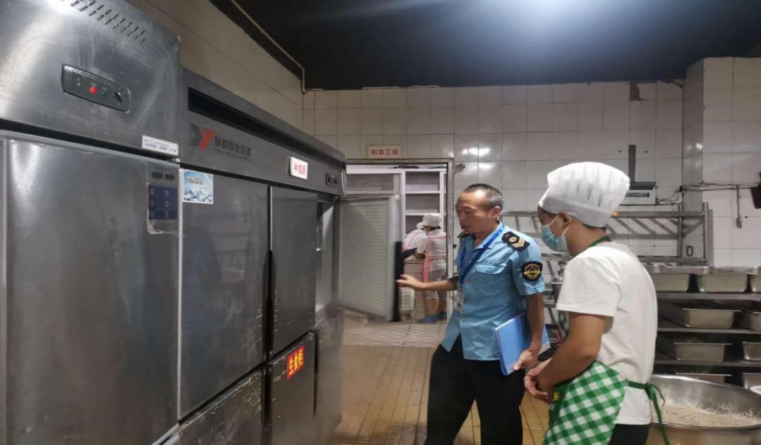 2020年9月11日上午,长宁县食品药品监督管理局胡国友大队长一行三人在熊鸿焰副校长的陪同下,莅临我校进行新学期食堂食品安全专项检查。通过对管理制度、索证索票、饭菜留样、食堂卫生以及规范食堂操作等方面的全面检查,胡国友大队长对我校食堂食品安全情况比较满意,同时对食堂管理中还存在的些许不足提出整改意见。