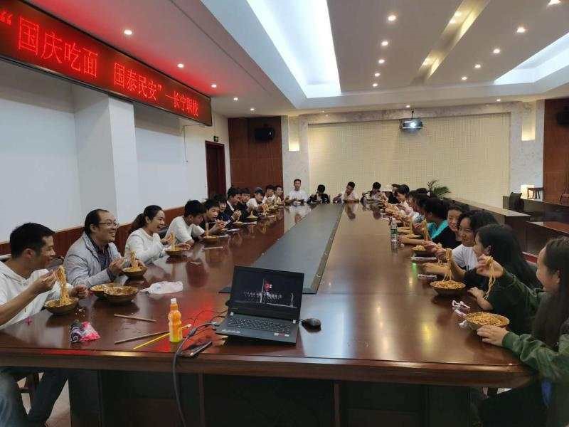 10月1日上午9点,学校“9+3”办公室主任石军组织同学们在明达厅认真观看了新中国成立70周年的献礼爱国影片——《我和我的祖国》。70年披荆斩棘,70年风雨兼程,既有先烈的浴血奋战,也有我辈的努力拼搏,所有的一切都离不开中国人民的团结奋进,离不开前辈们不惧牺牲、勇往直前的革命精神。影片的观看,给学生们上了一堂生动的爱国课,学生们从影片中深切感受到祖国母亲的伟大与不易。看完影片后,学校副校长熊鸿焰、教务处主任梁平、政教处副主任周玲带领着“9+3”学生一起品尝独具特色的爱国美食——“中华面”。大家吃着香喷喷的“中华面”,感受着浓浓的中国情!