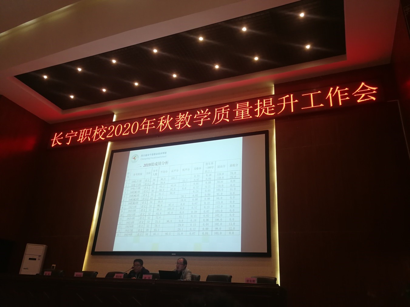 首先,教务处主任梁平对2020年秋期第一次月考成绩做了全面数据分析说明。梁主任参照宜宾市成绩分析的各项指标,详述了高二年级各班语数外成绩的平均分、高平分、低平分、优生率、及格率、最高分、最低分等情况,并说明了这些指标的计算方法,同时对比了各科最优与最差的班级成绩情况。