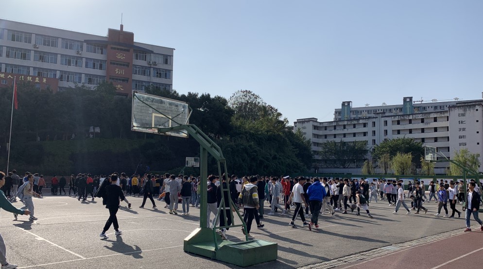 2020年11月19日下午第一节课后,随着消防警报声的响起,我校“119”消防安全月——“消防安全应急逃生演练”活动开始。各教学楼的学生们迅速疏散到指定的疏散场地,并很快集中到学校运动场。
