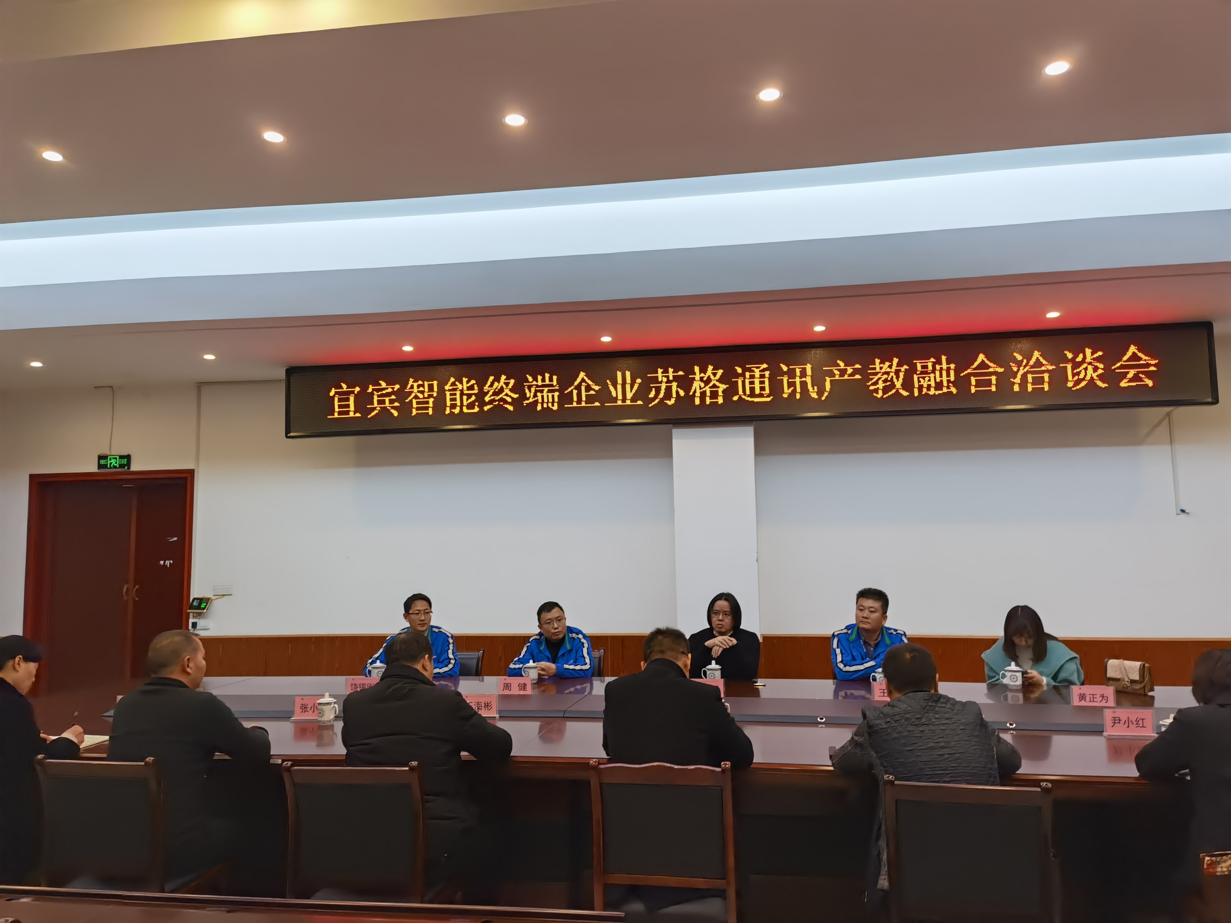 为响应国务院《职业学校校企合作促进办法》《国务院办公厅关于深化产教融合的若干意见》相关文件要求,更好的开展校企合作,深化产教融合,助力宜宾市加强产教融合试点城市建设工作的实施,以及成为四川经济副中心的奋斗目标,2020年11月25日和12月3日,我校先后邀请宜宾智能终端苏格通讯、四川朵唯两家企业到校洽谈校企合作及产教融合相关工作,会上我校王运兵校长、王海彬书记、熊鸿焰副校长、张小波纪检特派员、缪孝霞主任等几位领导分别就我校近年和宜宾临港智能终端企业合作相关情况作了交流和分享。苏格通讯袁总和四川朵唯卢总等分别从企业基本情况到我校学生实习情况作了介绍和反馈。