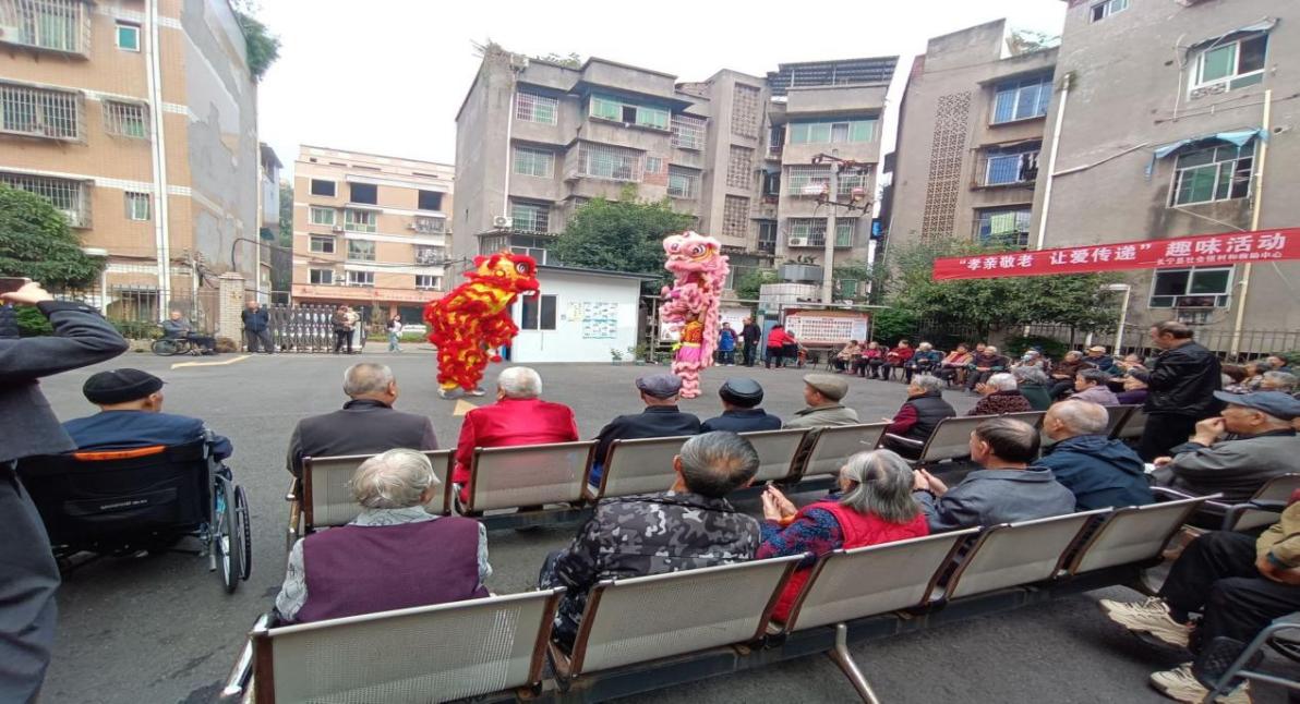 活动现场,志愿者们围绕重阳节主题精心编排节目。充满民俗特色的舞狮表演活灵活现,红粉双狮腾跃嬉戏,为重阳佳节增添了喜庆氛围;川剧变脸绝活惊艳全场,变幻的脸谱让老人们目不暇接,掌声此起彼伏。一个个节目将传统民俗与敬老情怀相融,让老人们在节日里尽享欢乐。