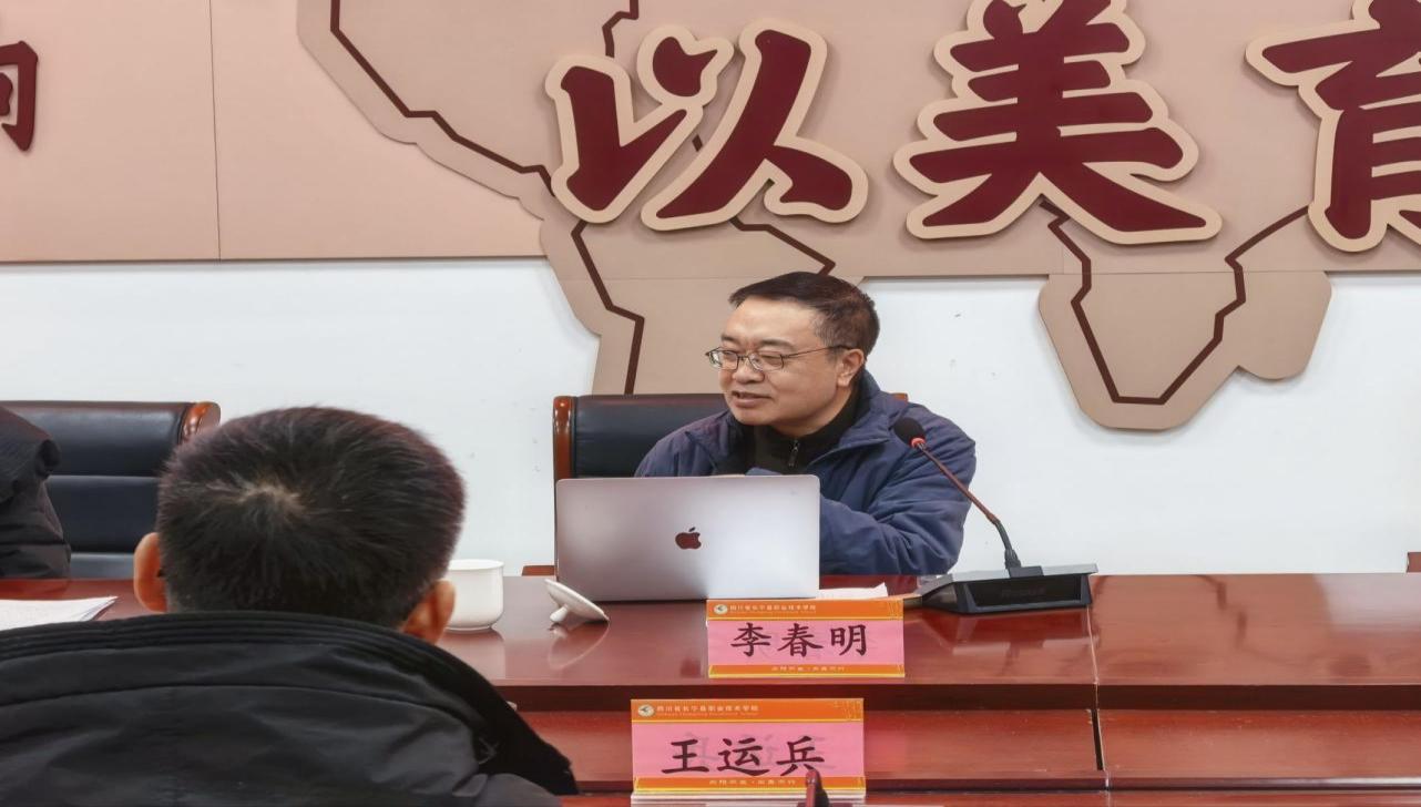 本次研讨会特邀四川省职业技术教育学会副会长李春明、成都职业技术学院人物形象设计专业主任聂巳棚、成都工贸职业技术学院无人机测绘技术专业教研室主任张春艳三位专家到会指导。学校党委副书记、校长王运兵,党委副书记、纪委书记熊鸿焰,党委委员、副校长周训冬、张小波、梁平、熊黎出席会议。学校教务处相关人员、各专业部部长及教学部长、各专业带头人、专业课教研组长等近40人参会,会议由周训冬主持。