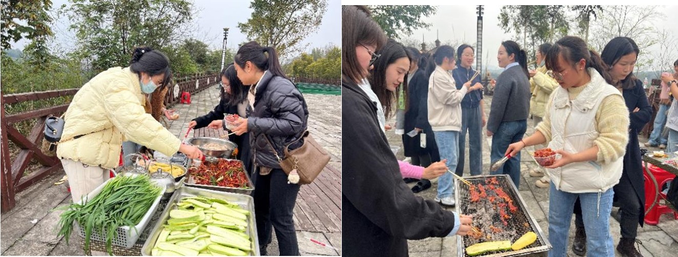 下午开展了春游踏青、趣味运动会、自助烧烤等系列团建活动。全体女教职工按专业部分组,踊跃参与齐头并进、吃西红柿、转布条、公鸡下蛋等趣味项目,赛场之上协作默契、加油声、欢笑声此起彼伏,充分展现了团结奋进、昂扬向上的精神风貌。大家或动手烤制美味烧烤,或漫步田野,欣赏橙黄橘绿、油菜花遍地的田园风光,在欢声笑语中放松身心、增进情谊。