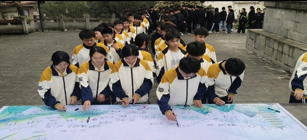活动现场,全体师生身着整洁校服,庄严肃穆地参与各项活动:奏唱国歌并默哀1分钟,缅怀革命先烈;梁平讲述本地英烈事迹,寄语青年学子;学校代表敬献花圈,师生依次敬献白菊花、鞠躬致哀;全体师生在领誓人带领下庄严宣誓,随后在签名横幅上郑重签名;随后,全体师生瞻仰烈士纪念碑与烈士墓;最后,主持人作总结讲话,号召师生将英烈精神转化为学习和工作的动力,全体师生有序返程。