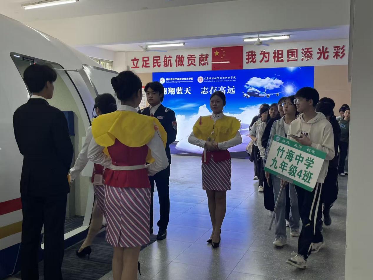 活动期间,竹海中学师生在长宁职校各部门带队教师的分组引导下,有序参观了旅游航空、烹饪、工业机器人、汽车维修等核心专业实训基地,实地考察了教学楼等校园学习区域,近距离接触专业实训设备、感受职业教育教学氛围