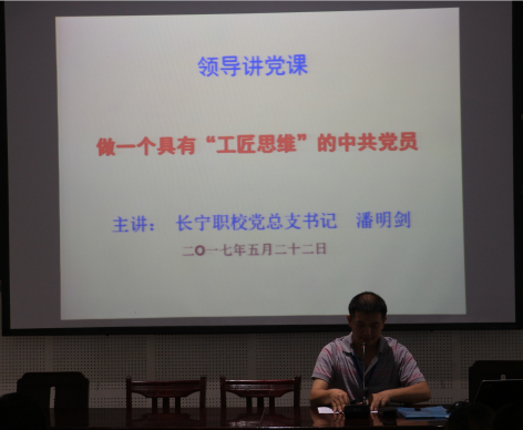 2017年5月22日下午,长宁县职业技术学校全体党员参加了党课学习活动。此次党课由校党总支书记潘明剑主讲。