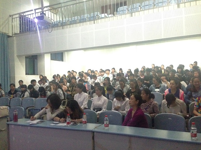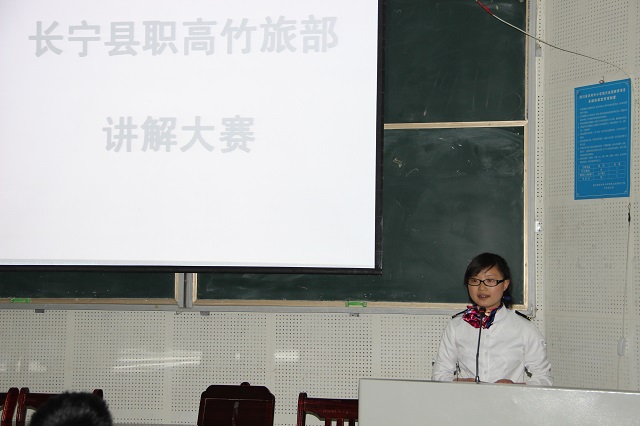 2015年4月21日晚,在学校的阶梯教室里,竹旅部师生汇聚一堂开展了普通话讲解比赛。这次比赛以介绍我校专业群设置、学生进校感想、竹旅部各专业介绍等内容为主,各班赛前分别经过初赛后筛选优秀选手进行此次决赛,本次比赛邀请了竹旅部专业普通话教师当担评委,分别从选手仪容仪表、普通话水平、讲解内容等几个方面进行打分,选出一、二、三等奖,并在赛前表演了有旅游专业特色的餐厅餐巾折花。