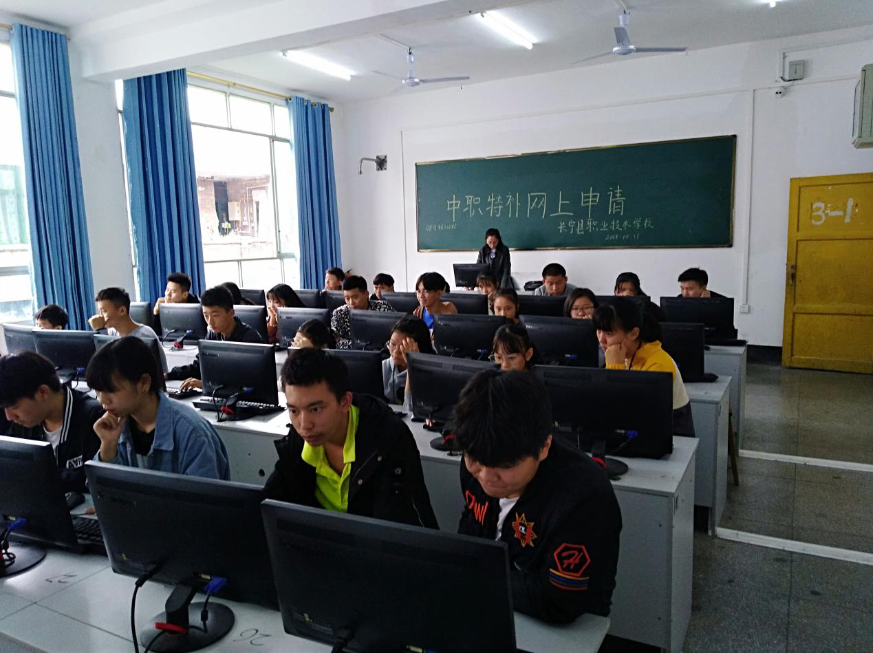 2018年10月11日,长宁县职业技术学校中职特补网上申请工作启动。本次网上申请由信息中心负责。具体安排如下:第一、二节课时段,3-1机房是机械部建档学生申请,3-2机房是建电部建档学生申请;课间操及第三节课时段,3-1机房是信息部建档学生申请,3-2机房是竹旅部建档学生申请。3-1机房由胡于梅演示和指导,3-2机房由王杰演示和指导。