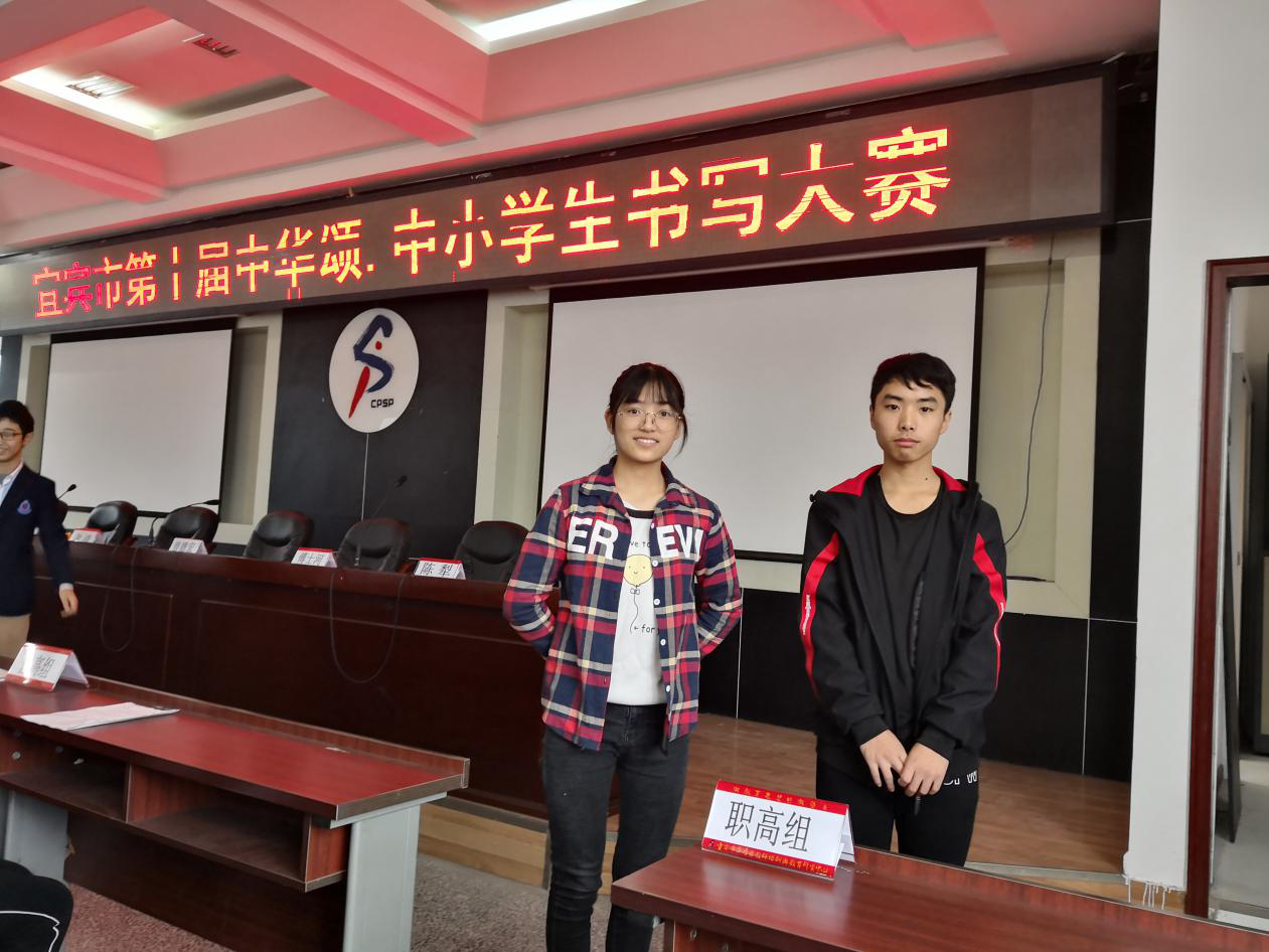 10月26日上午,书写大赛在六中新校区顺利举行。本次比赛我校有两名优秀同学参赛,分别是2017级计算机1班的王莉萍和2017级幼师2班的詹友,童光勇老师带队。这次现场书写比赛中,两位同学非常自信,发挥正常,获得了兄弟学校老师的好评。通过这次比赛他们看到了自己的优点,也发现了自己的不足,开拓了眼界,为下次比赛积累了宝贵经验。