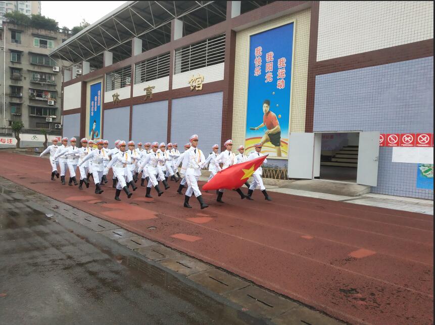 开幕式上不,国旗队伴着雄壮的《运动员进行曲》护送庄严的五星红旗走过主席台,精彩的运动会入场式由此拉开帷幕!各班各具特色的方阵伴着激越铿锵的乐曲,迈着整齐有力的步伐,喊着响亮的口号,精神抖擞的从主席台前经过,接受台上领导的检阅。