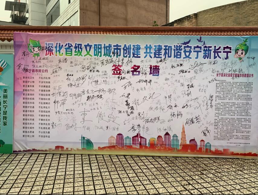 学校团委组织志愿者们向同学们宣传了深化省级文明城市创建,共建和谐安宁新长宁的精神,大家纷纷表示积极参与并从我做起,以签字的形式表达自己支持。不一会签名墙便被同学们名字填满了,相信我们长宁职校的进步和发展,一定会为和谐安宁新长宁做出自己的贡献!
