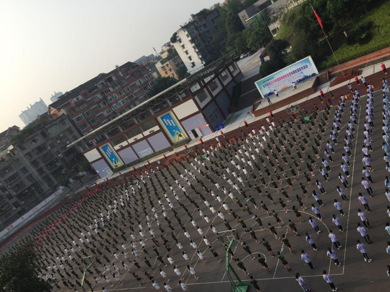 在国庆节即将来临之际,我校于9月28日上午举办了“强体魄–庆国庆”庆祝建国70周年大课间展演活动。在长宁职校党总支书记、校长潘明剑的带领下,全校师生1000多人参加此次活动,取得了良好效果,调动了全校师生“我运动、我健康”的激情。