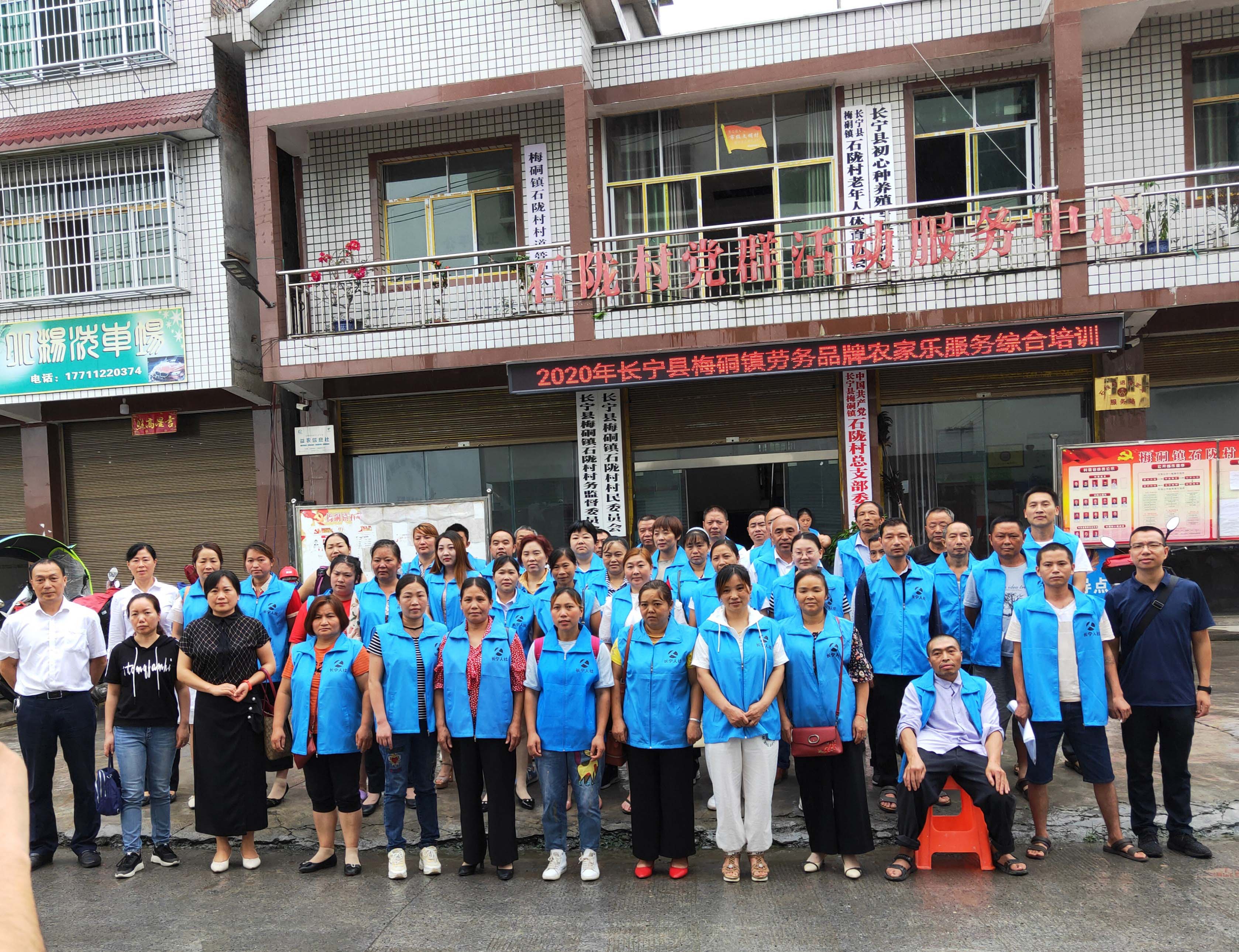 为助力长宁县全域旅游发展,发展乡村旅游,为地方培养农家乐行业服务人才,帮助广大农民工提升职业技能水平,根据《宜宾市人民政府办公室关于印发宜宾市职业技能提升行动实施方案(2019-2021年)的通知》(宜府办发〔2019〕19号)和我县职业技能提升行动工作要求,由长宁县农民工服务中心主办、长宁县职业技术学校承办的梅硐镇农家乐综合服务初级劳务品牌培训班于2020年7月17日在梅硐镇石陇村会议室正式开班。
