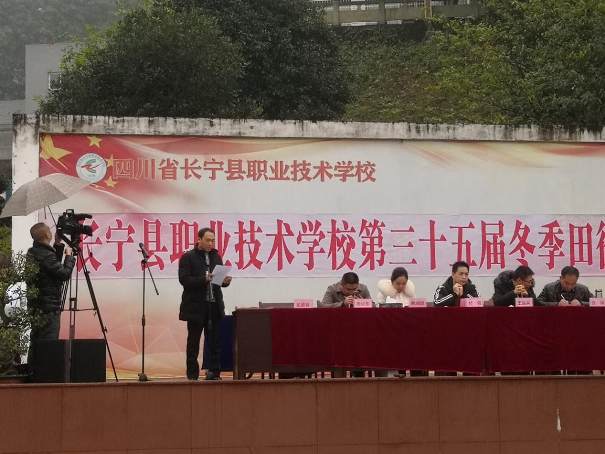 宣誓完毕,由长宁县职业技术学校党总支书记、校长王运兵宣布长宁县职业技术学校第35届冬季田径运动会正式开幕。