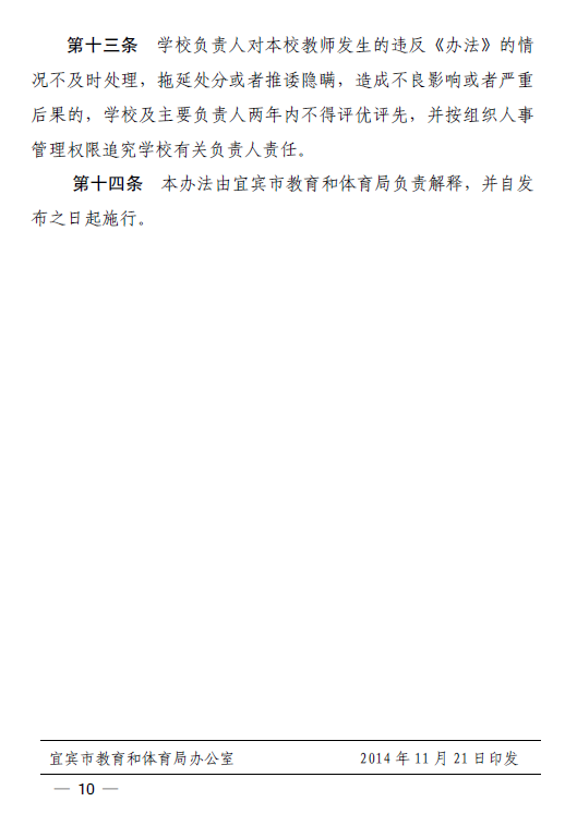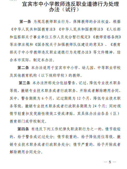 宜宾市中小学教师违反职业道德行为处理办法