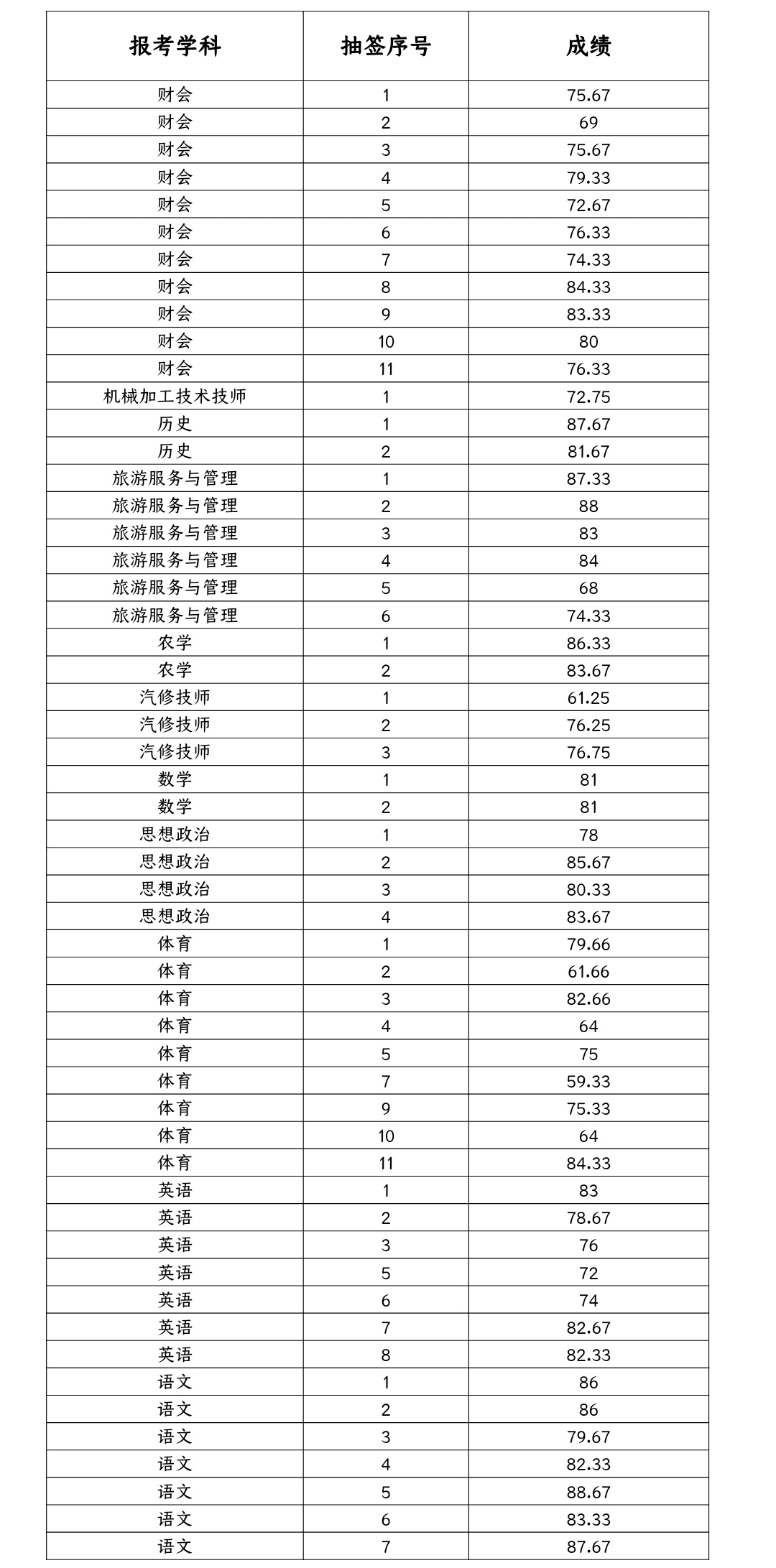 附件:四川省长宁县职业技术学校2021年招聘代课教师、技师面试成绩
