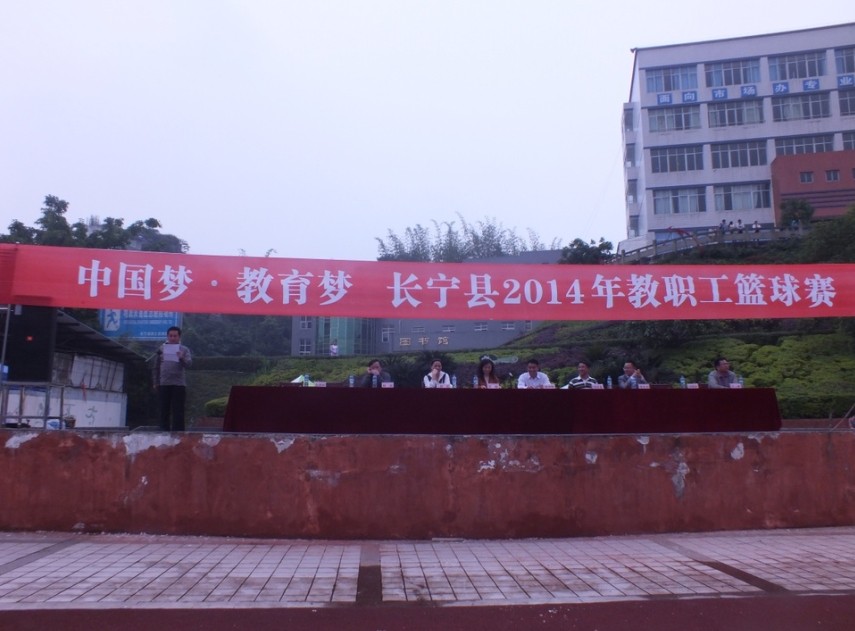 5月25日下午三点,进入夏天的阳光带着三分火气照射着绿树成荫的长宁职高校园,运动场显得格外亮丽,来自全县各乡镇为单位的教职工队汇同城关以学校为单位的教职工队共计24支男队和6支女队在长宁县职高校园运动场上举行了由县教育局主办、长宁县职高协办的“中国梦.教育梦长宁县2014年教职工篮球赛”开幕布式,在分管教育的副县长雷敏宣布“篮球运动会开幕”后,由协办单位长宁县职高队与龙头镇教职工队的男子篮球比赛揭开了此次篮球运动会的赛程。