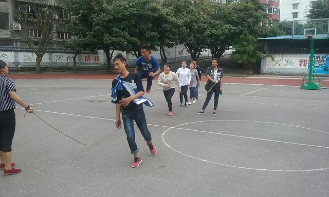 十月四日学校团委组织同学们开展了妙趣横生的拓展训练。在“8“字跳绳接力赛、跳绳单人赛、二人三足接力赛等活动中同学们团结协作,密切配合,树立了合力制胜的意识,体验了团队胜利的快乐。